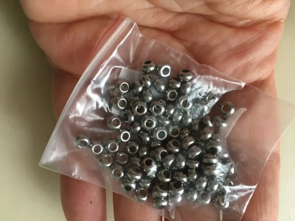 8Seasons 304 cuentas espaciadoras de acero inoxidable plano redondo Color plata joyería DIY alrededor de 5mm( 2/8 ") Dia, agujero: aprox 2mm, 100 PCs