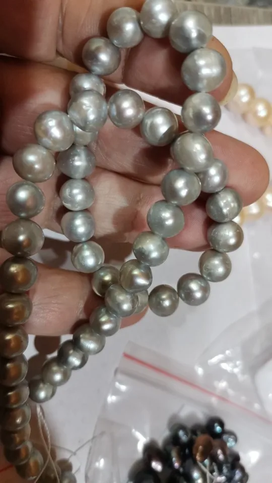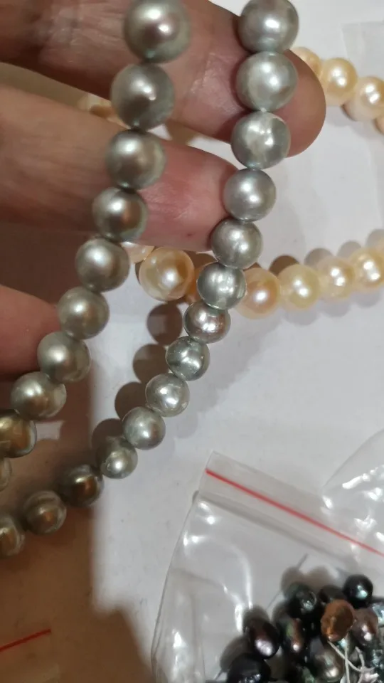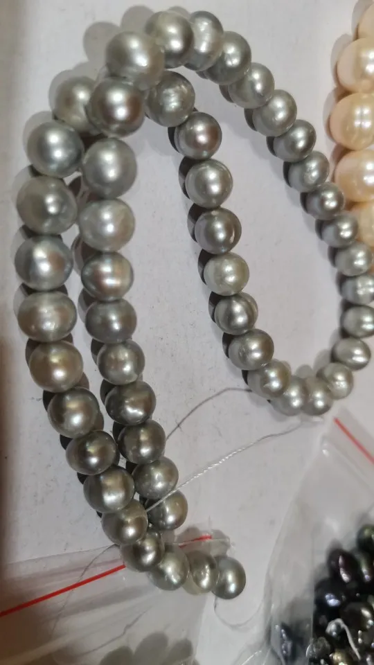 AA de patata Natural forma Cuentas de Perlas de agua dulce para fabricación de joyería Diy collar de pulsera de 8-9mm gris perlas cultivadas 14,6 "15,7"