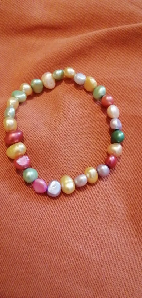 Abalorios de Pulsera de Perlas Naturales de gran oferta, pulseras de perla de colores con cuerda elástica, regalo de perla Real para niña y amiga, 100%