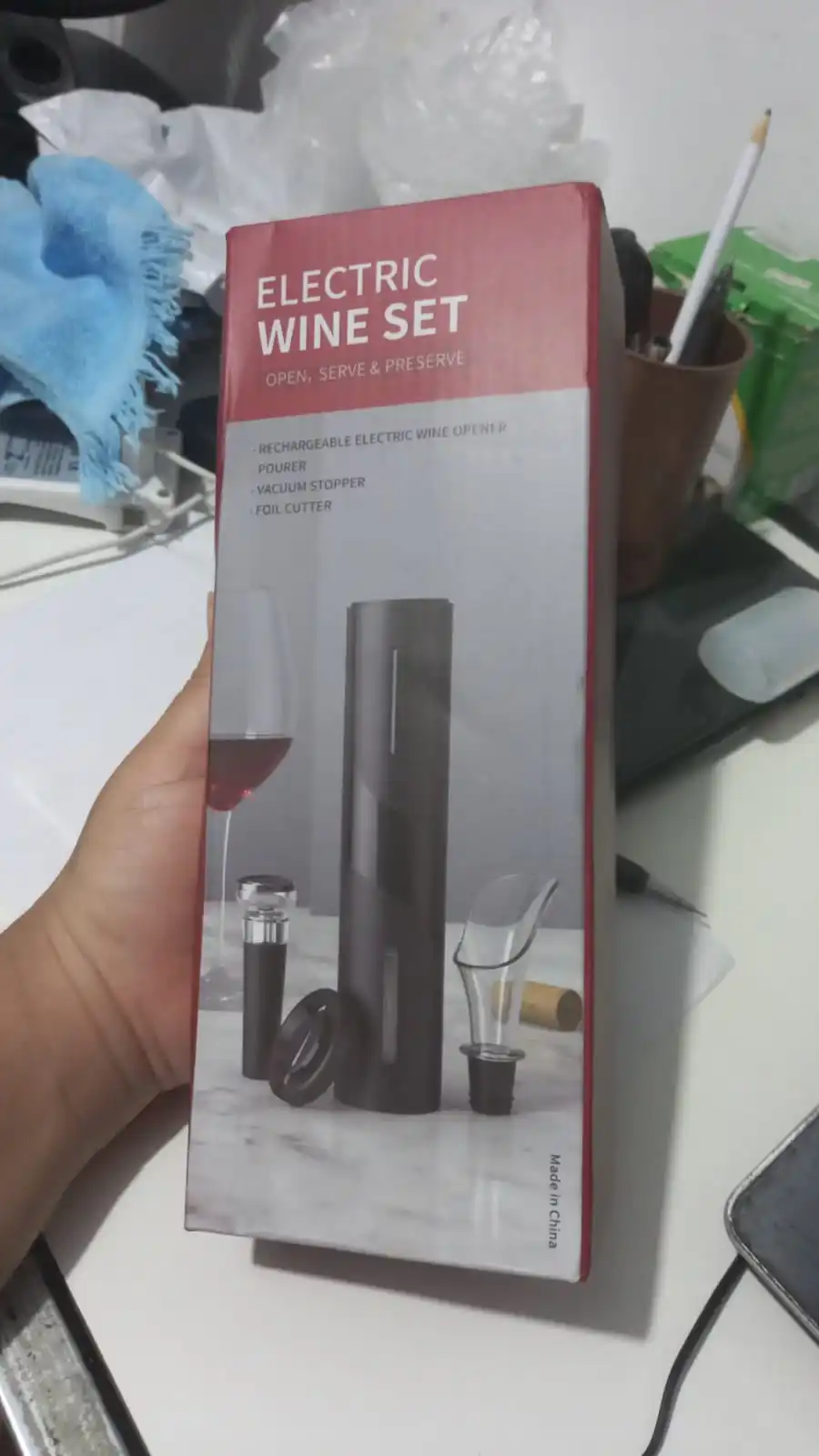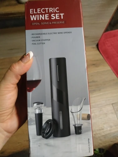 Abrebotellas eléctrico, abridores de botellas de vino Set con línea de carga USB, cortador de papel de aluminio, tapón de botella de vino, vertedor de vino para regalo
