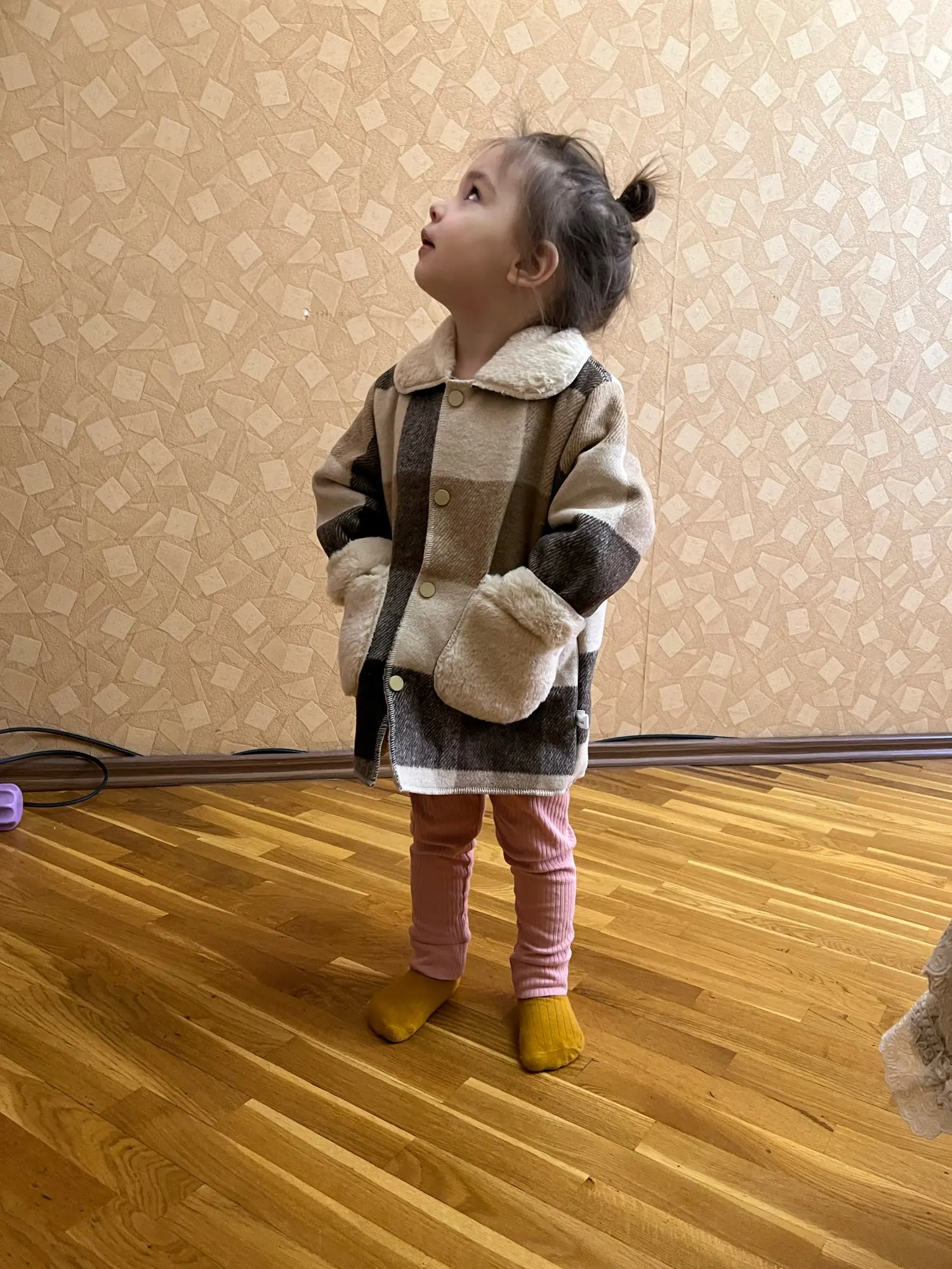 Abrigo de lana a cuadros para niñas, abrigo largo y grueso de 80-130 Cm, ropa para bebés y niños, chaqueta, prendas de vestir exteriores
