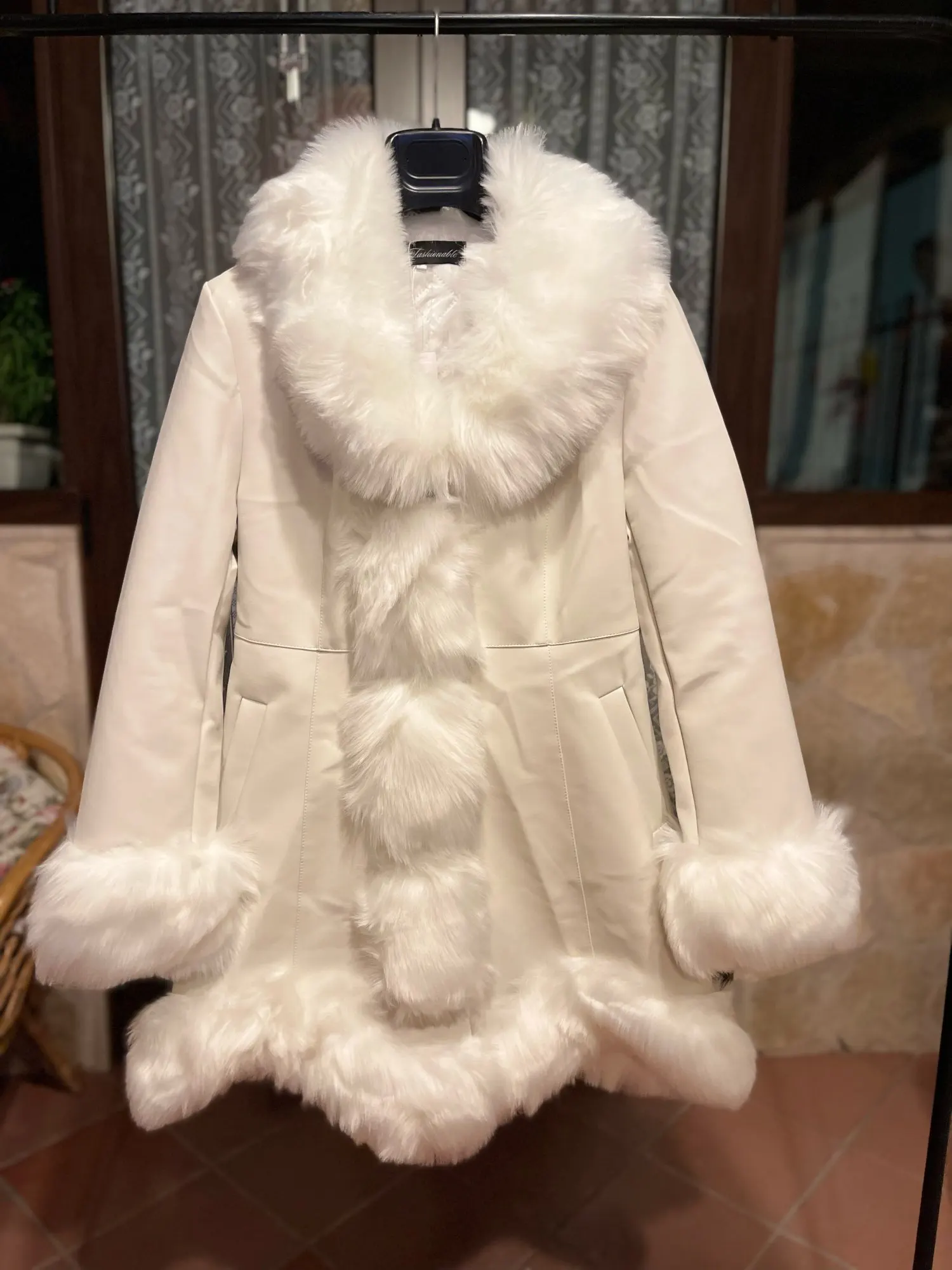 Con cuello de piel de zorro