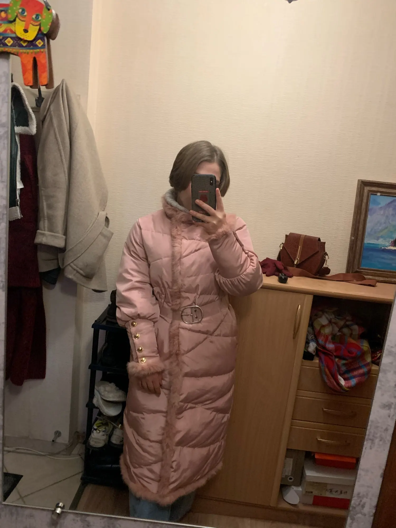 Abrigo largo y esponjoso de piel de conejo auténtico para mujer, Parkas con cinturón, invierno, F2509