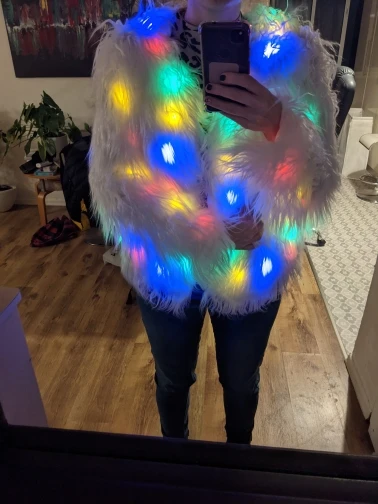 Abrigo ligero LED de piel sintética para mujer, chaqueta de pelo esponjoso para disfraz de Navidad, prendas de vestir para invierno, cálido, para fiesta, fiesta, Club, 6XL