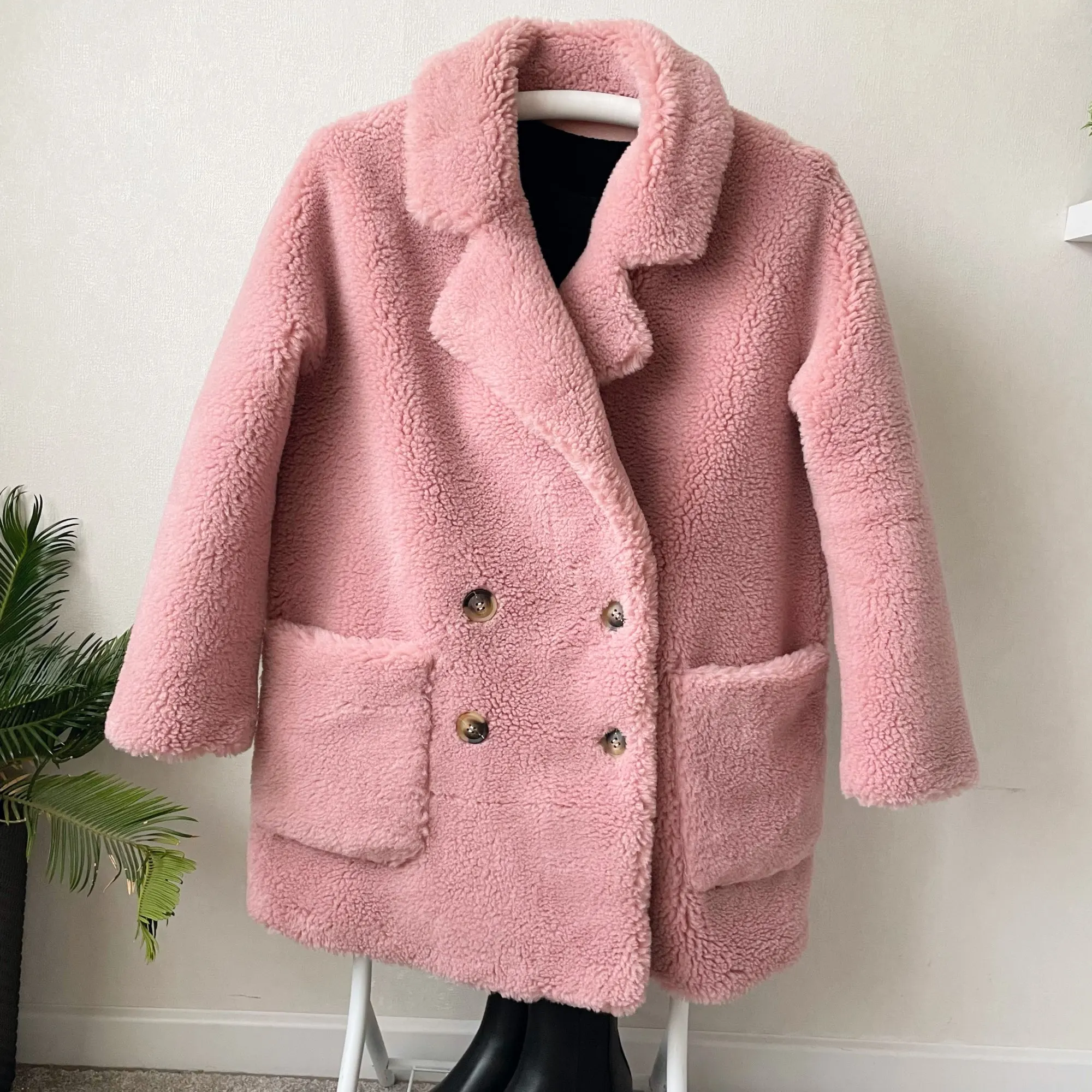 Abrigos de lana australiana de alta calidad para mujer, abrigos de piel auténtica gruesa, cálida, elegante, holgada, talla grande, prendas de vestir largas de oveja, Invierno 2022