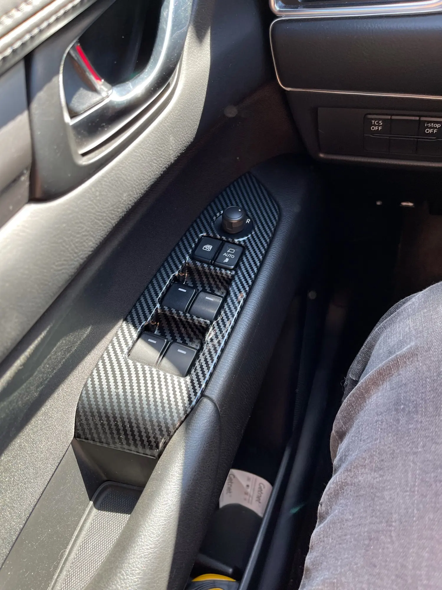 Accesorios de coche para Mazda CX-5 CX5 KF 2017-2022 Interior de fibra de carbono cubierta de interruptor elevalunas Trim dentro de marco para reposabrazos