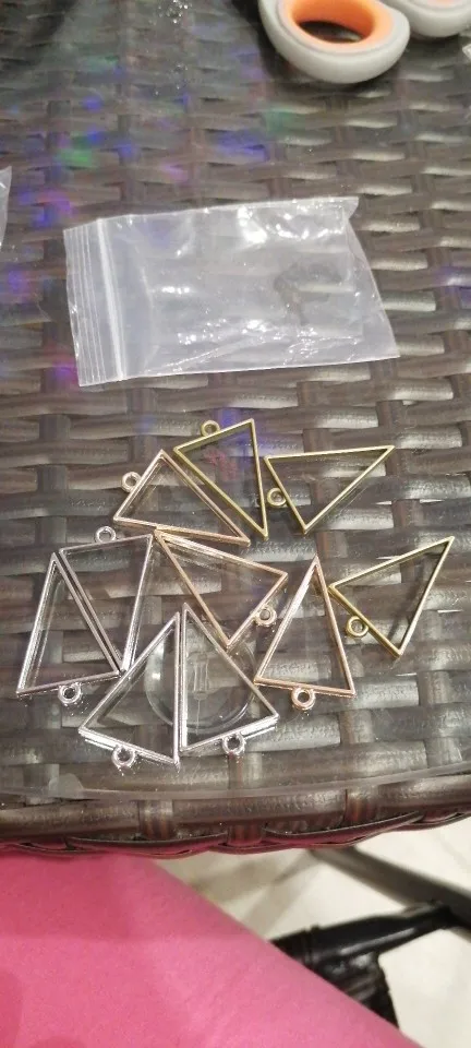Accesorios de joyería de aleación de tres colores, 10 Uds., 25x39mm, colgante en blanco de pegamento hueco, bandeja con bisel 12C46