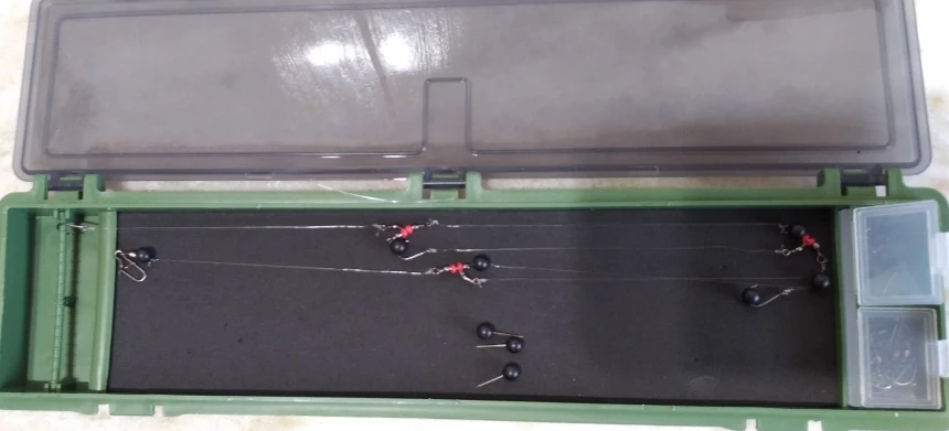 Accesorios de pesca de carpa, caja de almacenamiento, caja de línea de pesca de carpa, tabla de Rig de pelo con pasadores, aparejo de carpa, billetera Rig de pelo