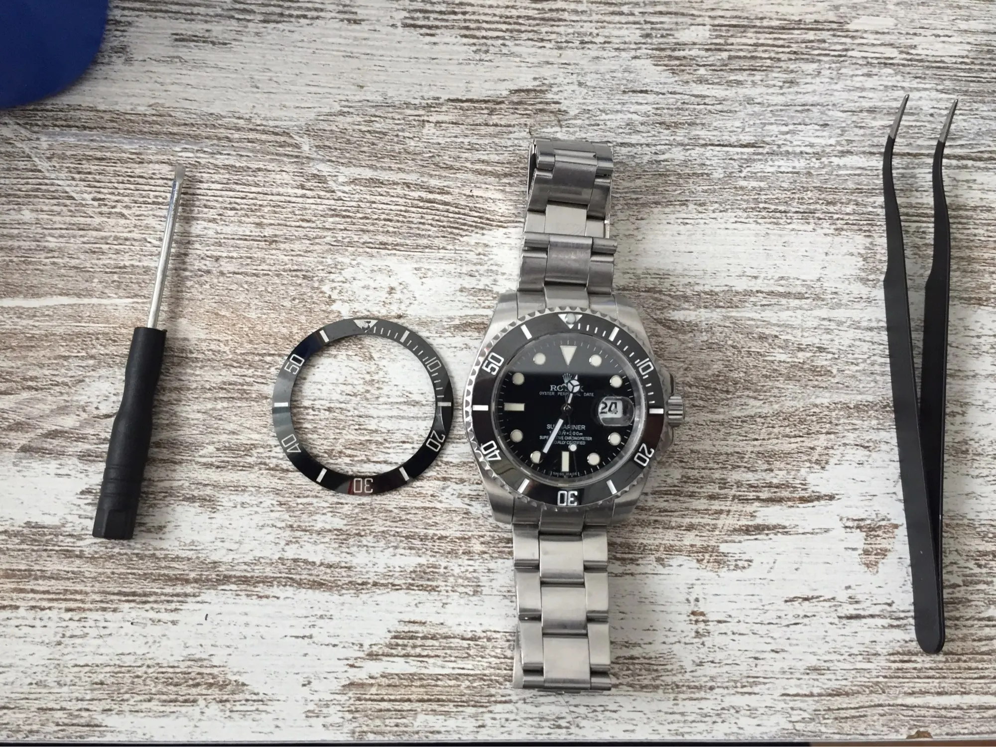 Muy bien, la verdad es que me esperaba peores acabados. Los números y las rayas están hundidos, como en los rolex, yo pensaba que estaban pintados solamente. Sin rayones, cuando lo tenga montado pongo más fotos.