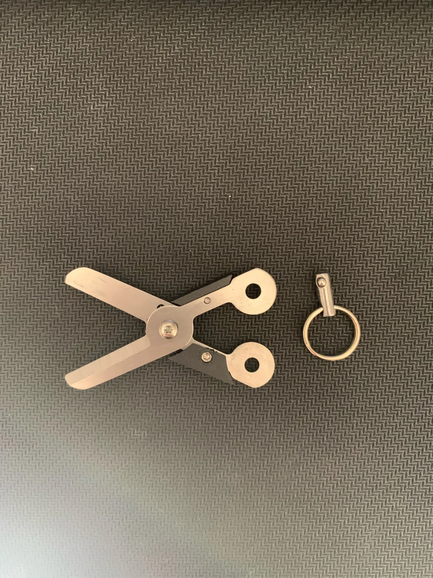 Acero Mini supervivencia primavera EDC Scissor Gadget llavero cortador Gear bolsillo anillo Fold Scissor corte Latch Kit de supervivencia viaje