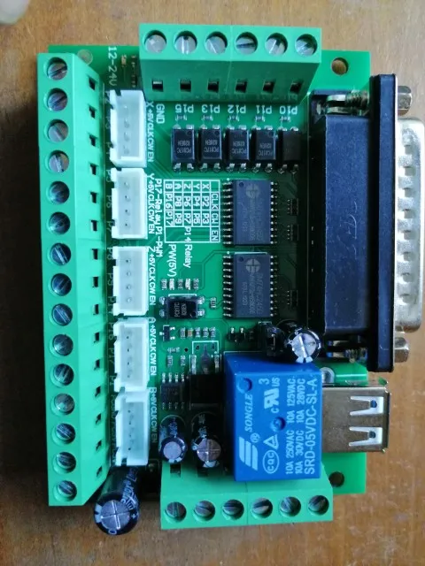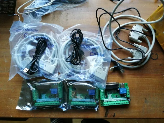 Adaptador de interfaz CNC de 5 ejes actualizado, placa de ruptura para controlador de Motor paso a paso Mach3 + Cable USB + cable paralelo DB25