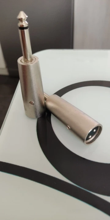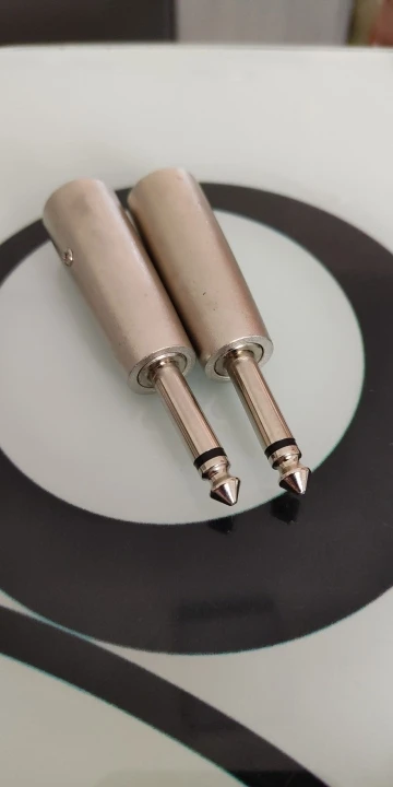 tal cual se ven en la foto,quizás entran demasiado ajustados en el conector la hembra,aunque lo bueno de eso es que puede evitar ruidos de conexión cuando se esté usando en movimiento.Recomendable