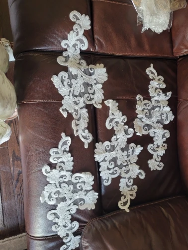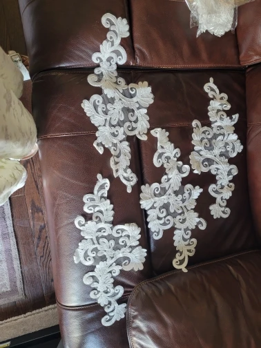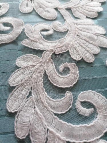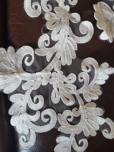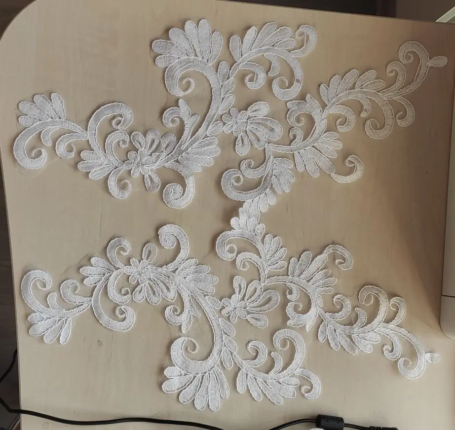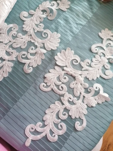 Adornos de costura para manualidades, 1 par de espejo con flores de marfil, Venecia, Apliques de encaje de algodón, 45x21cm, BD0298