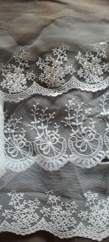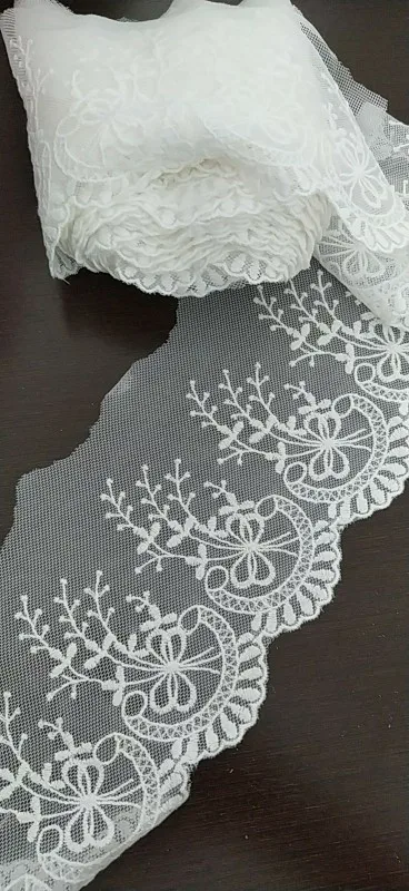 Adornos de encaje de malla bordada para ropa, accesorios de costura DIY, color blanco y Beige, 13cm de ancho, 5 yardas