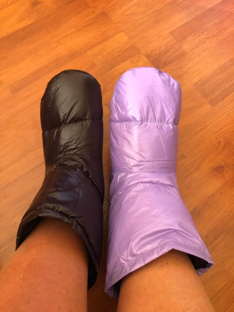 Aegismax-accesorios para saco de dormir, zapatillas de plumón de pato blanco, calcetín suave ultraligero para acampar al aire libre, calzado aislante cálido para interiores Unisex