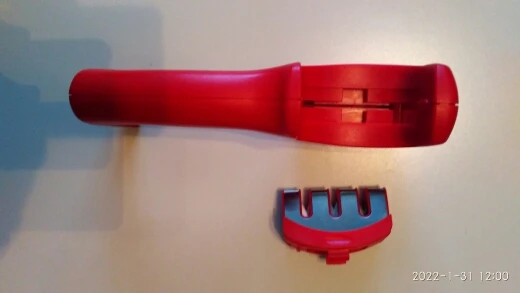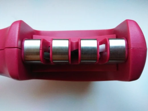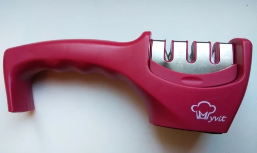 El producto corresponde con la descripción, funciona bien con los cuchillos pero no tan bien al afilar tijeras. Llegó rápido, en 17 días fue la entrega por paquetería, llegó sin ningún desperfecto y bien empacado. Buen vendedor.