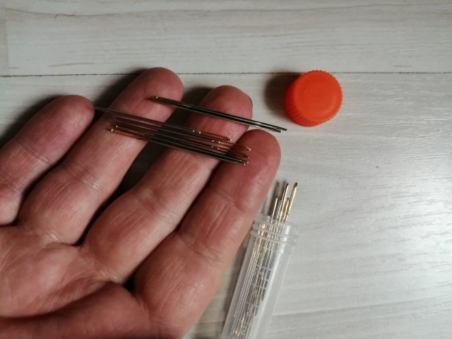 Aguja de costura para manualidades de cuero, cabezal de prisma redondo, herramienta afilada puntiaguda para bordar, aguja de ojo grande, cola dorada