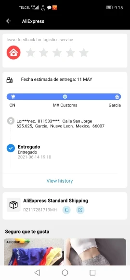 Valoración de Aliexpress: