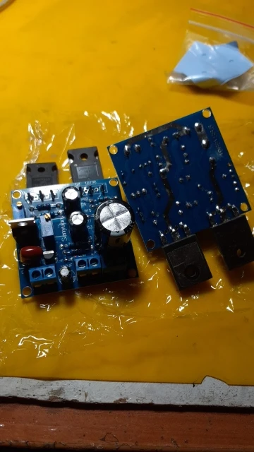 Gran placa. Asi como la ven suena muy bien, pero si le agregamos un preamplificador y con un voltaje en la placa de 24v 6A y hacer la red de zobel, queda un gran amplificador por tu casa.