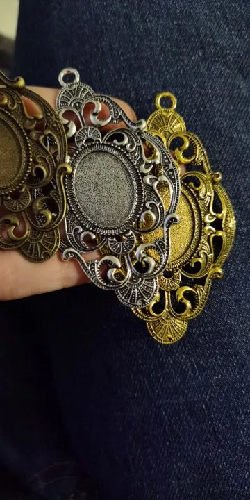 Ajuste de cabujones ovales de 18x25mm MARCO DE cameos de cristal Vintage, bandeja de bisel para DIY, Accesorio para hacer collares, 5 unidades/lote, K05426