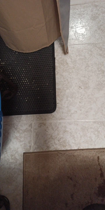 La alfombrilla consta de dos partes pegadas en los extremos con velcro. La superficie con agujeros es de plástico. Los agujeros son grandes, no enormes, pero recogen muy bien la arena. Pensé que a mi gato le harían daño pero para nada, entra y sale del arenero sin problema. Recomendado coger más anchura del ancho del arenero porque algunos granitos de arena tienden a no quedarse en la alfombrilla si esta es más pequeña o muy justa.