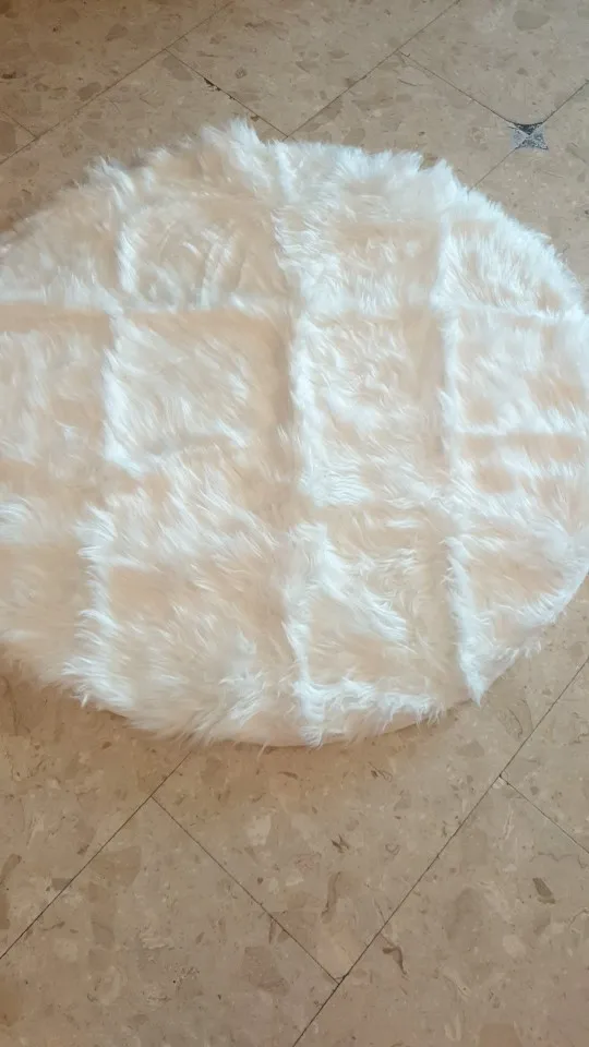 Alfombra redonda de imitación de piel de oveja, tapete redondo, con textura peluda y sedosa, de material sintético, color blanco, ideal para sala de estar y dormitorio