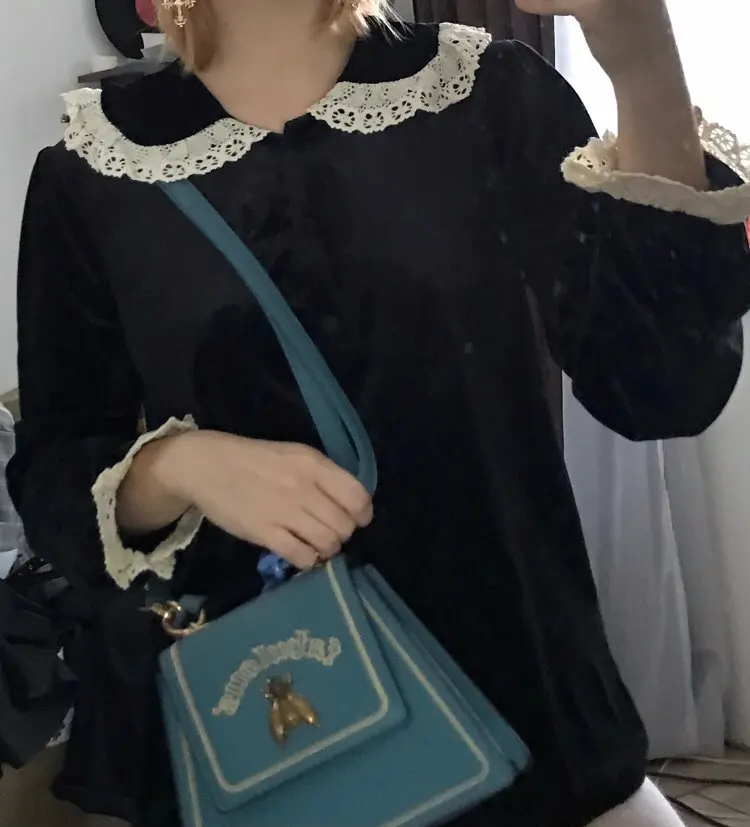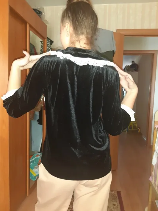 Alien Kitty-Blusa de oficina de terciopelo de alta calidad, top de encaje de alta calidad, gran oferta, de talla grande, manga larga, 2022