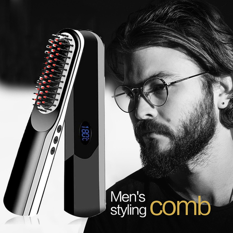 Alisador de barba para hombres, cepillo de pelo multifuncional inalámbrico, peine alisador rápido, instrumento para estilo de cabello