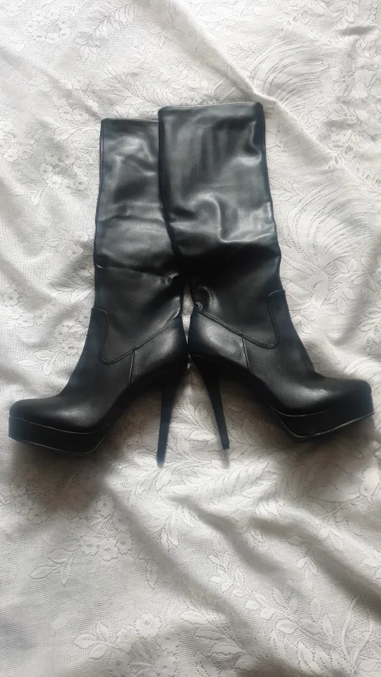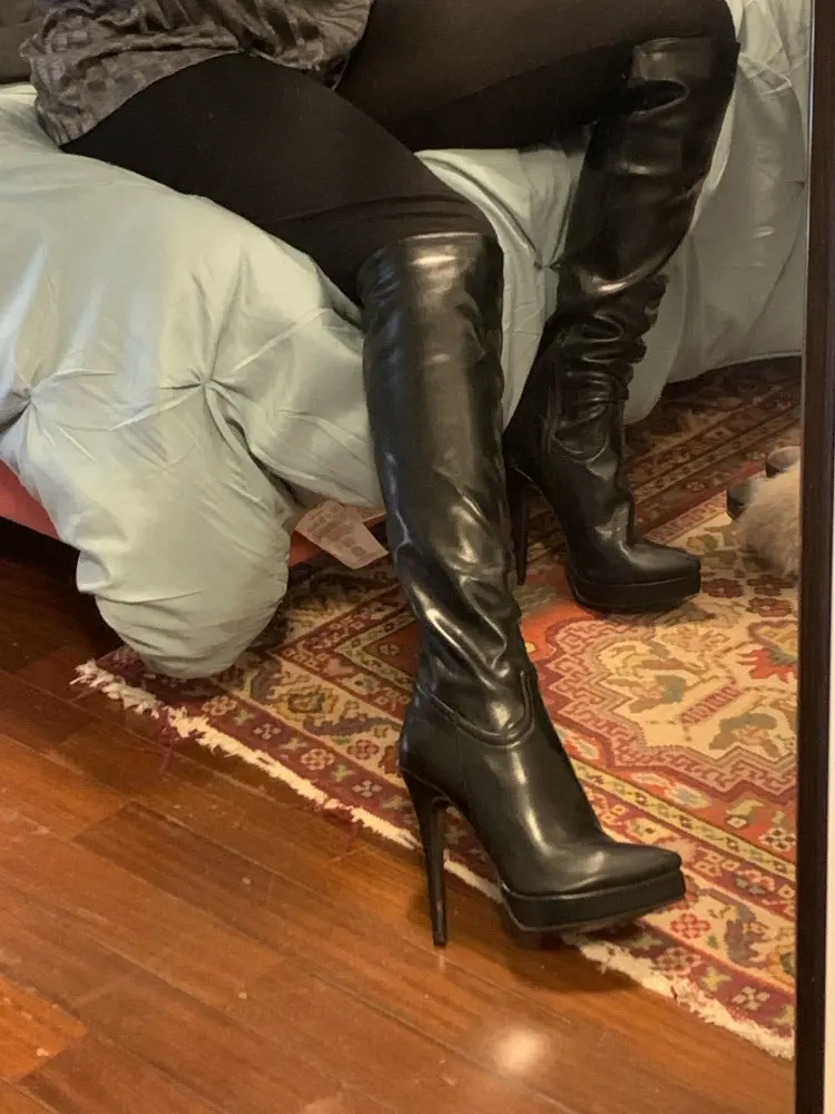 ALMUDENA Cielo negro zapatos de tacón alto botas de plataforma hasta la rodilla Slim con cremallera botas altas Otoño Invierno de tacón vestido largo botas Size46