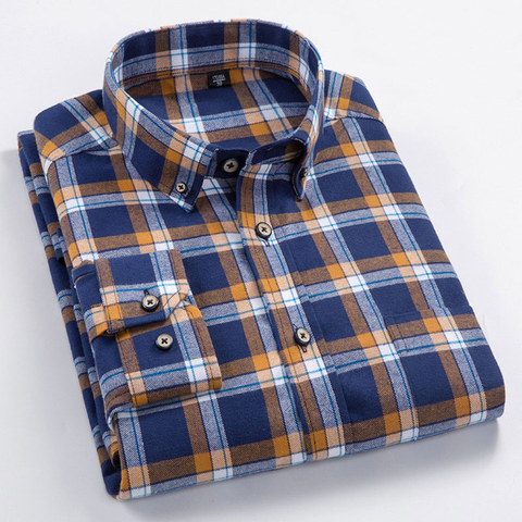 Alta calidad 100% de Otoño de algodón de manga larga camisas de giro-abajo Collar de Camisas Casual cómodo Plaid hombre Tops de talla grande S-8XL