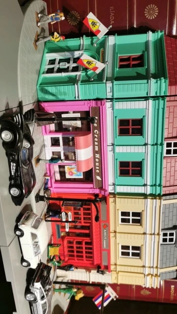 Alta simulación 1: 64 RMZ city Diorama edificio modelo para educación Kits de juguete DIY Casa Europea coches de Metal fundido a presión para niños regalos