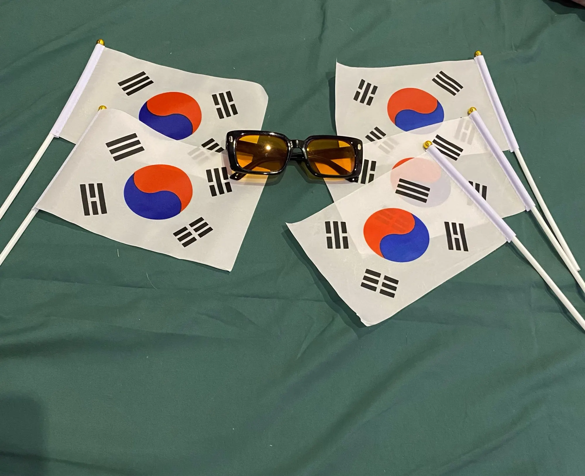 AMMIWAY-Bandera de poliéster impreso con asta de bandera de Japón, Corea del Sur, bandera para agitar con la mano, 14x21cm, 5 uds.