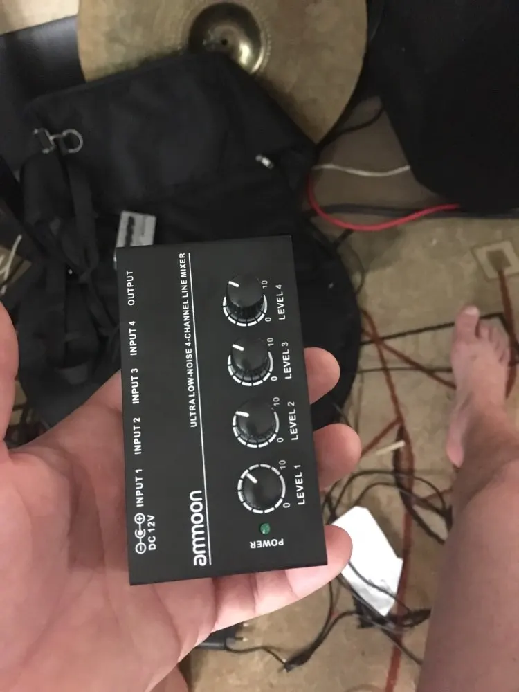 Ammoon MX400 4 canales mezclador consola de mezcla Ultra-compacto de bajo ruido línea Mono de mezclador de Audio con adaptador de corriente