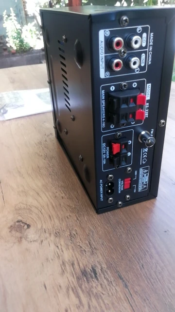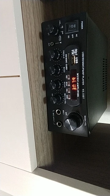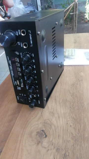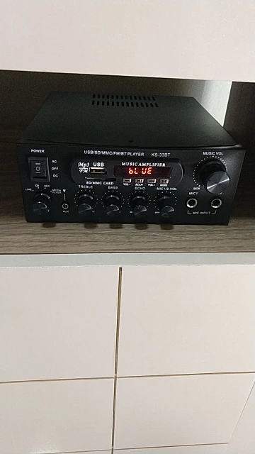 Es lo que es... no es muy profesional pero da bastante potencia, suficiente para una casa. El ecualizador no tiene demasiada calidad. En el selector "media player" va la radio, la SD y el bluetooth. La radio sólo puedes darle a "Scan" y te las memoriza en orden y sólo puedes seleccionar esas memorizadas. Cuando lee del USB sólo puedes pasar de canción, no de carpeta. No tiene balance derecha/izquierda. Eso como carencias a tener en cuenta. En general, hace bien su cometido, a mi me mueve una pareja de altavoces Sony de 8oh y 120w rms, y se escucha bastante decente. Con otros son 6,2oh y 50 w llegaba a distorsionar. Están colocados en un patio de 120m2 y sobra potencia. Lleva cable de alimentación 220v. En general bastante contento. Lo que se oferta es lo que es.