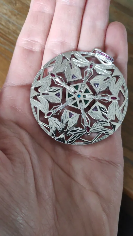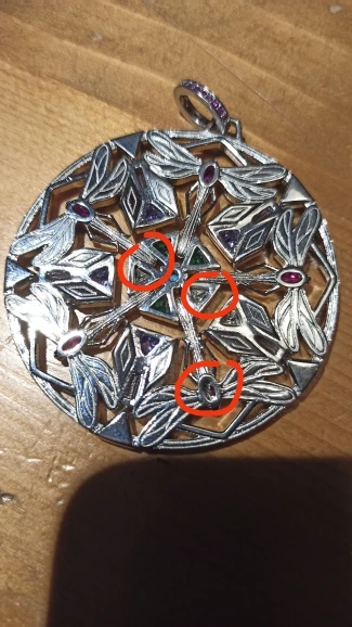 Producto de mala calidad: faltan piedras y el medallón no es plano, está torcido. Es un producto mal realizado.