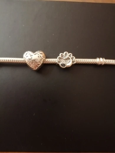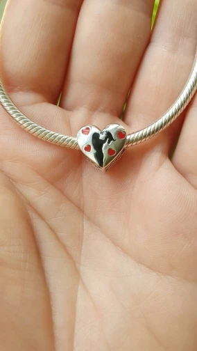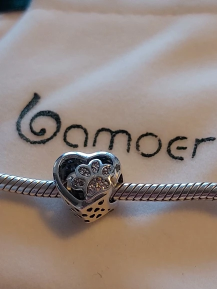 Amuleto con forma de corazón de amor de gato BAMOER, amuletos de corazón pisadas de pata de plata de ley 925 para brazalete, pulsera, joyería fina SCC1191