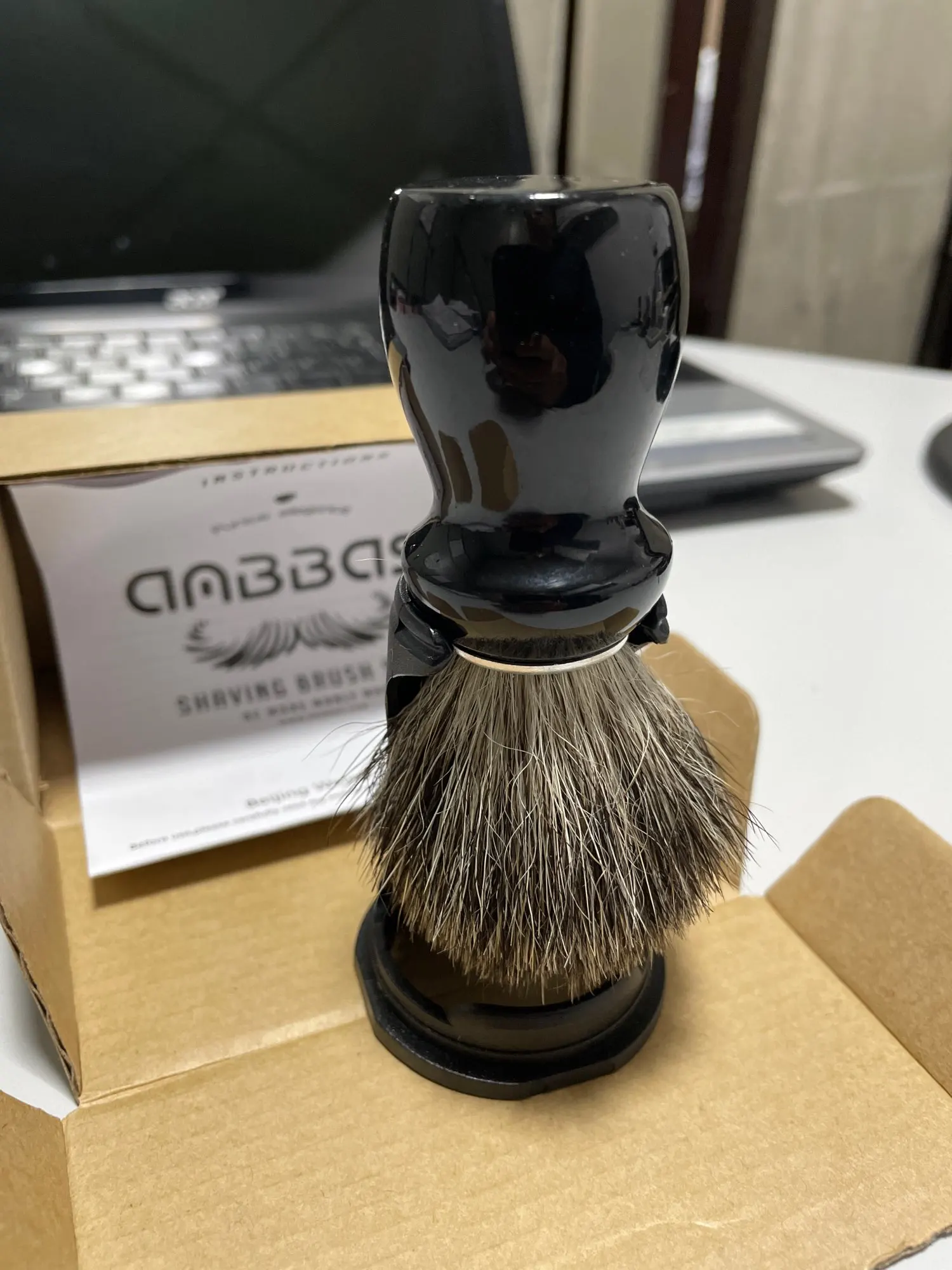 Anblas-brocha de afeitar para hombre, brocha de afeitar para pelo de tejón puro, mango de brocha de afeitar tradicional de madera, nudo de 25mm