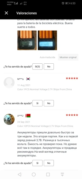 Valoración de Aliexpress: