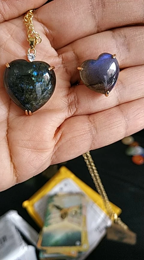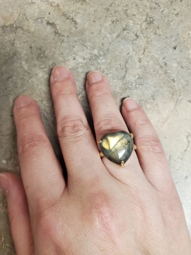 Anillo ajustable de lujo para fiesta, gemas de corazón, piedra, labradorita clásica, sortija ajustable para cóctel, aniversario, joyería de boda