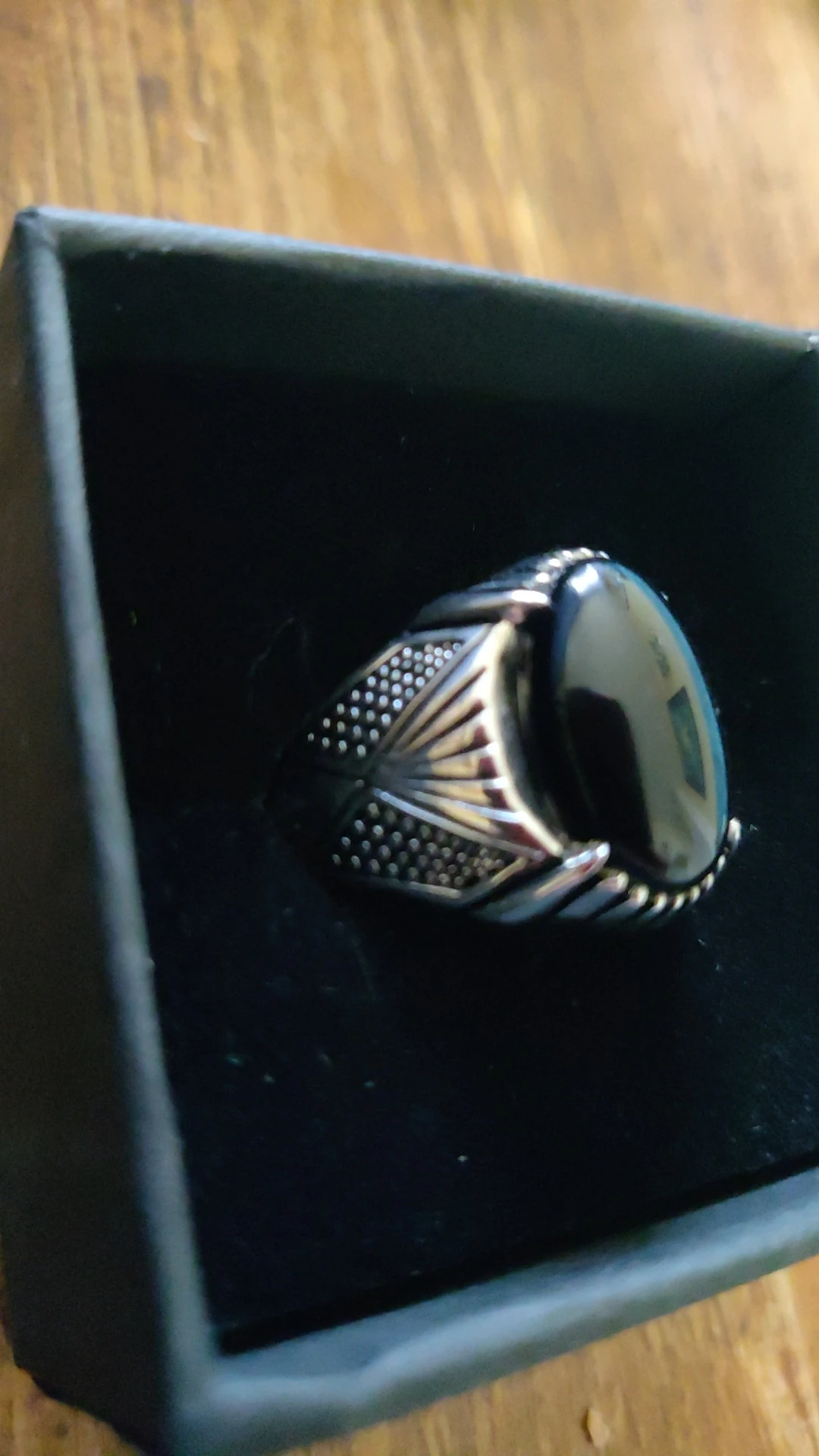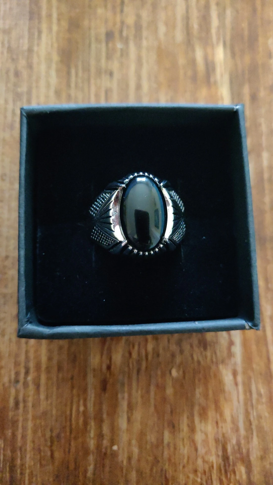 Es hermoso el anillo, igualito al de la foto. muy firme en su confección le encantó a mí Esposito, está feliz con su regalo. Llego antes del tiempo estimado. Se agradece su presentación, venía en una cajita negra de cartón con la marca en letras plateadas y en su interior era de terciopelo. Gracias