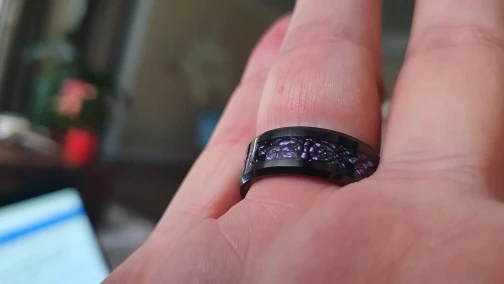 Anillo de carburo de tungsteno para parejas, anillo de carburo de tungsteno con incrustaciones de dragón negro de fibra de carbono púrpura, ajuste cómodo, color negro, 6MM y 8MM