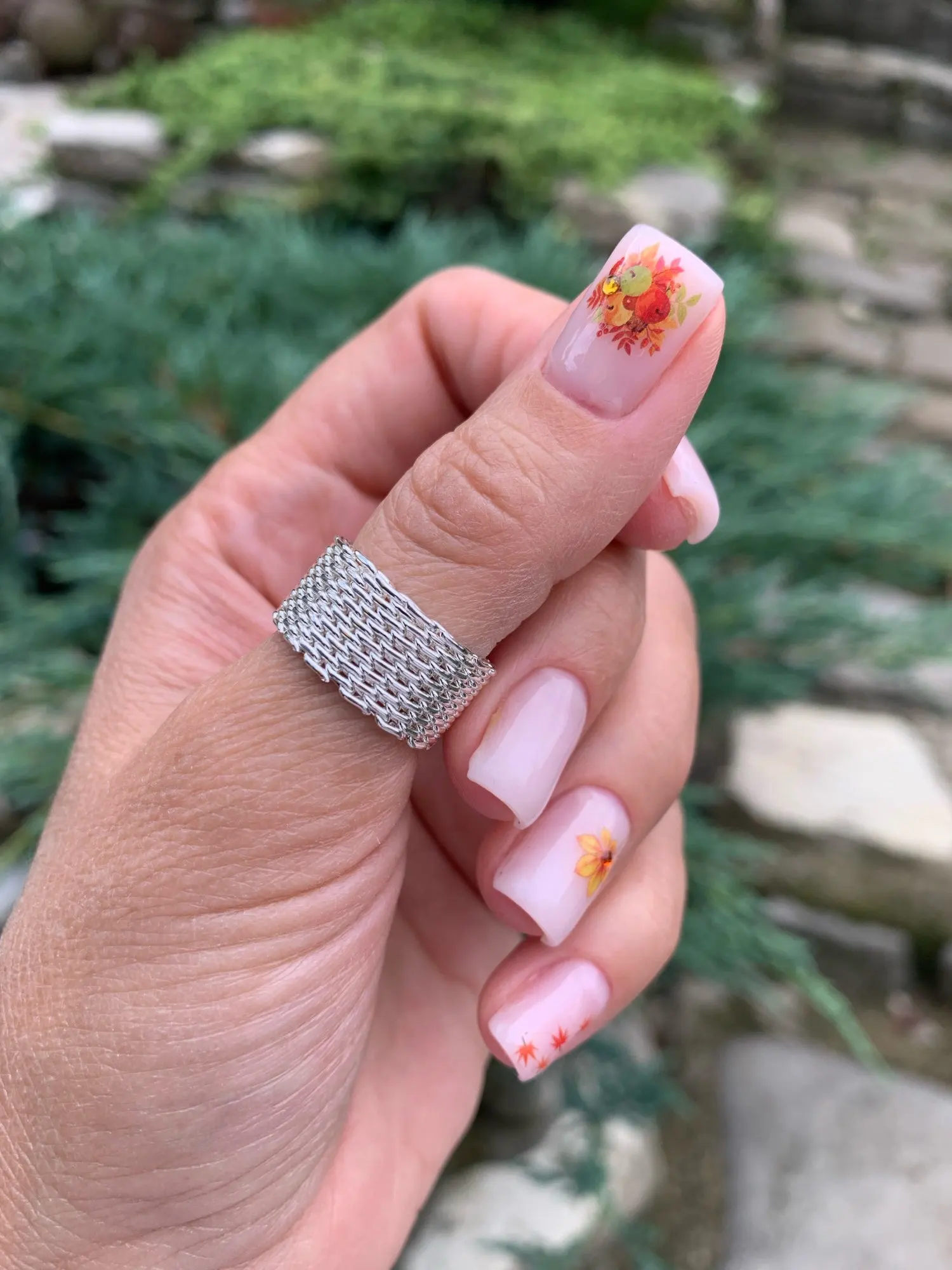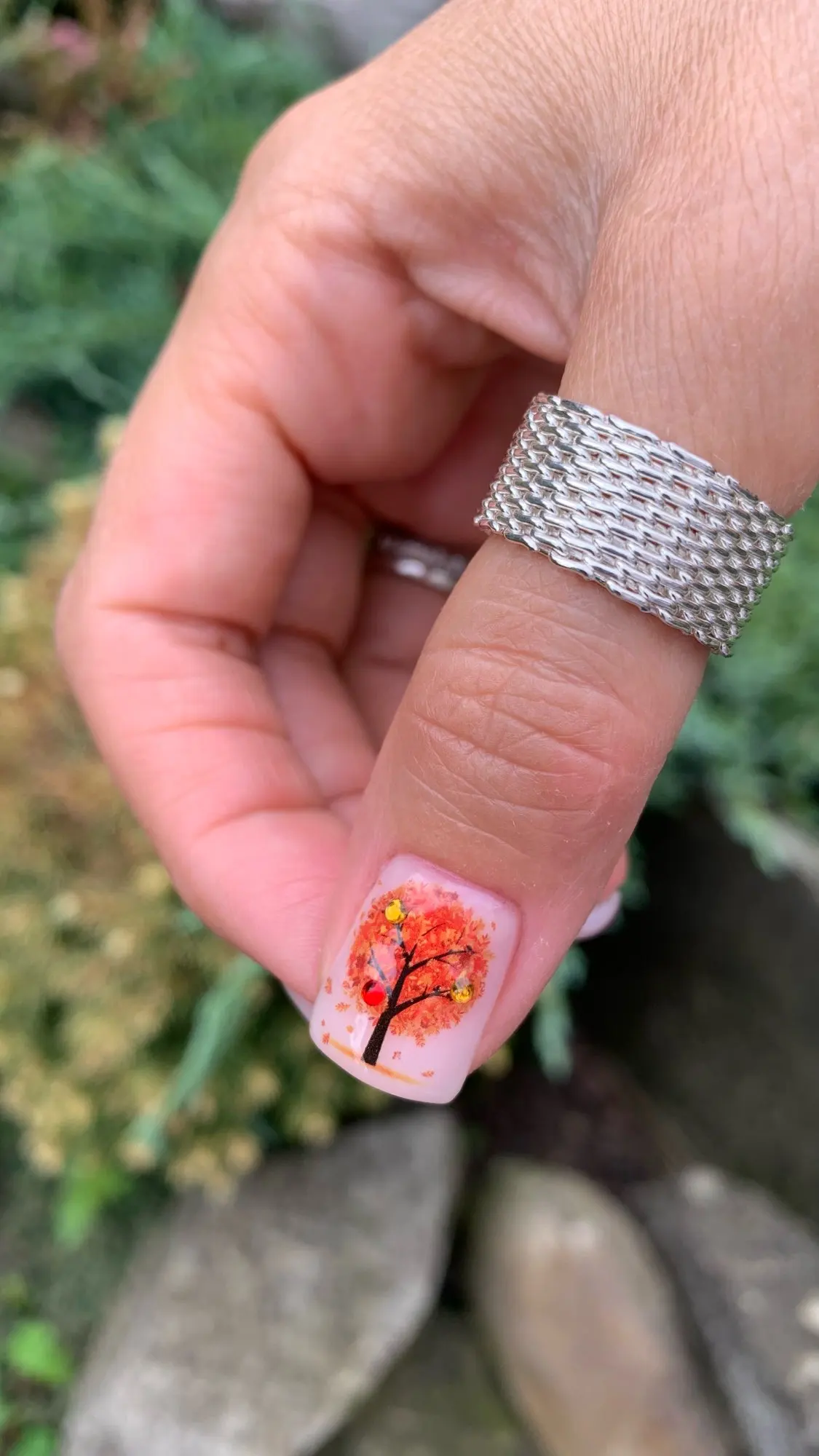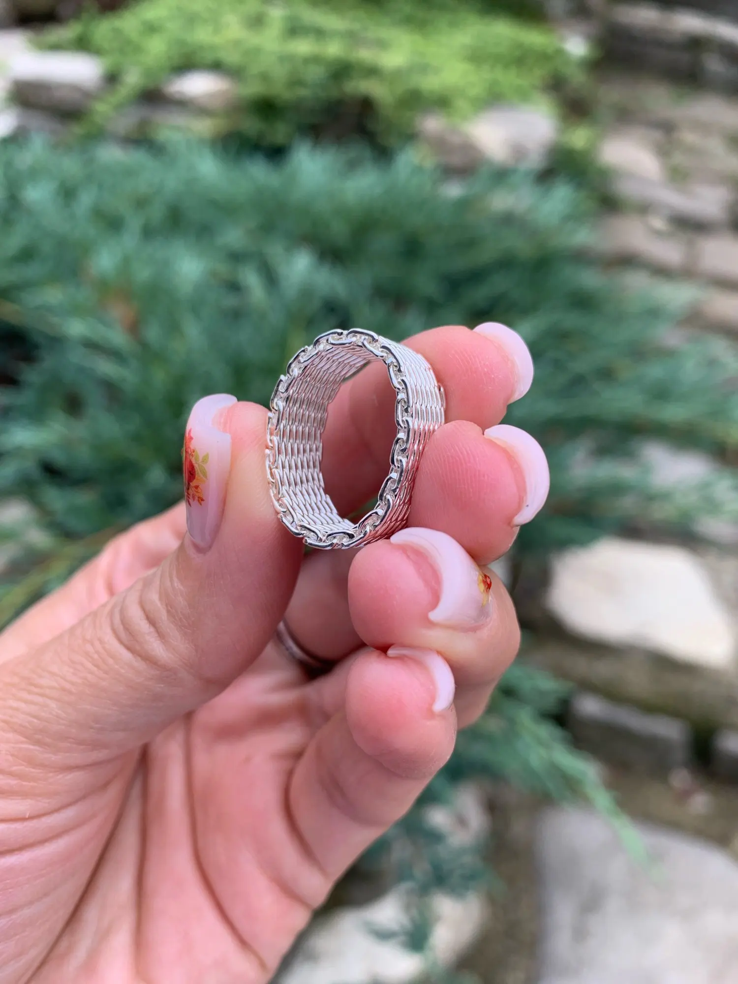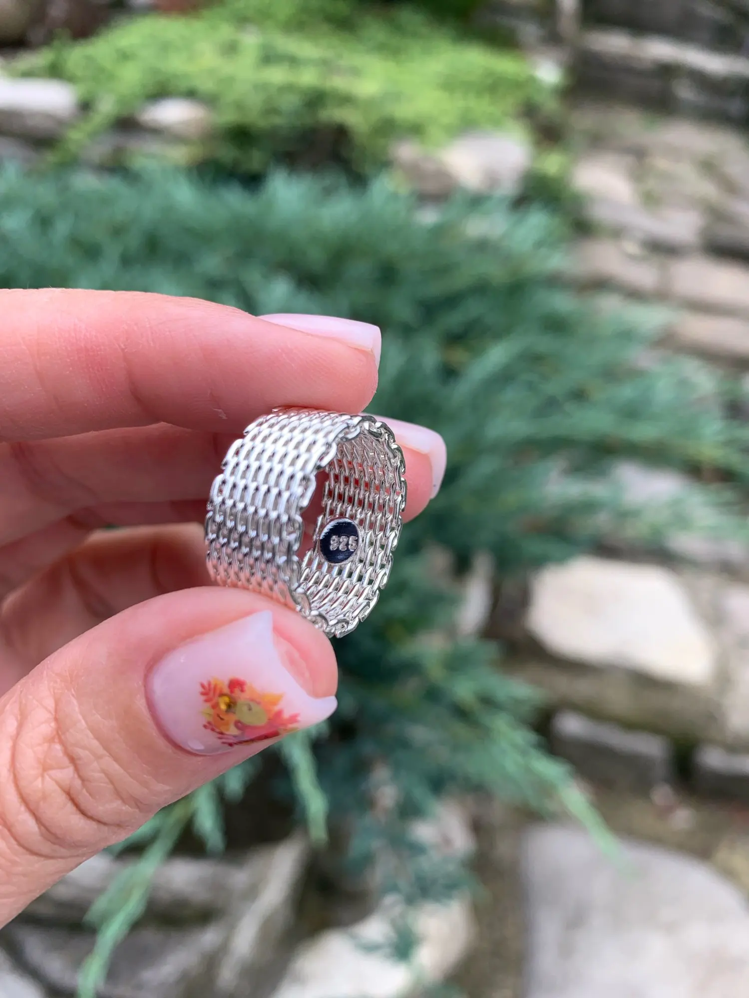 Anillo de malla con abalorio de color plata para mujer, joyería de moda, anillo de plata encantador, regalo de joyería R040