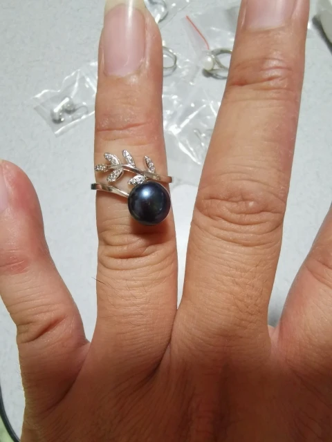Anillo de perlas naturales para mujer, sortija de hojas, blanco, gris, negro, para boda/regalo de fiesta