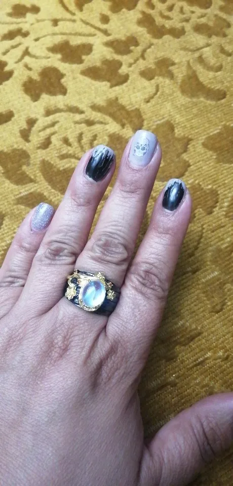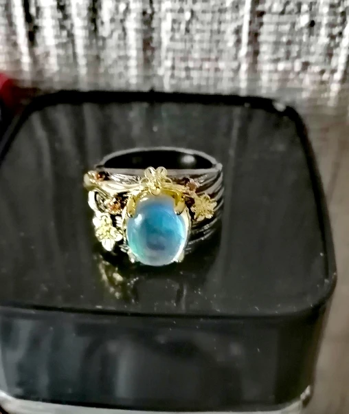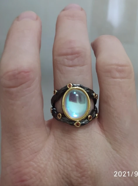 Anillo de plata de primera ley con piedra lunar para mujer, sortija, plata esterlina 925, Circonia cúbica, zirconia, circonita, zirconita, color negro y dorado, estilo bohemio