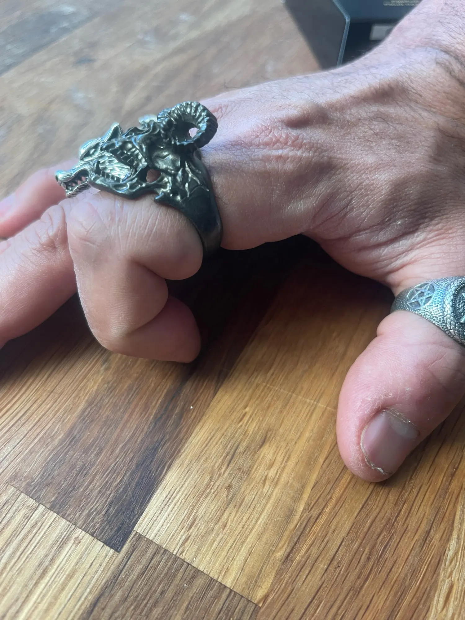 Anillo gótico Vintage de acero inoxidable para hombre, anillo de calavera para hombre demonio Satan, Cabra, anillo con grabado de motocicleta, accesorios de joyería