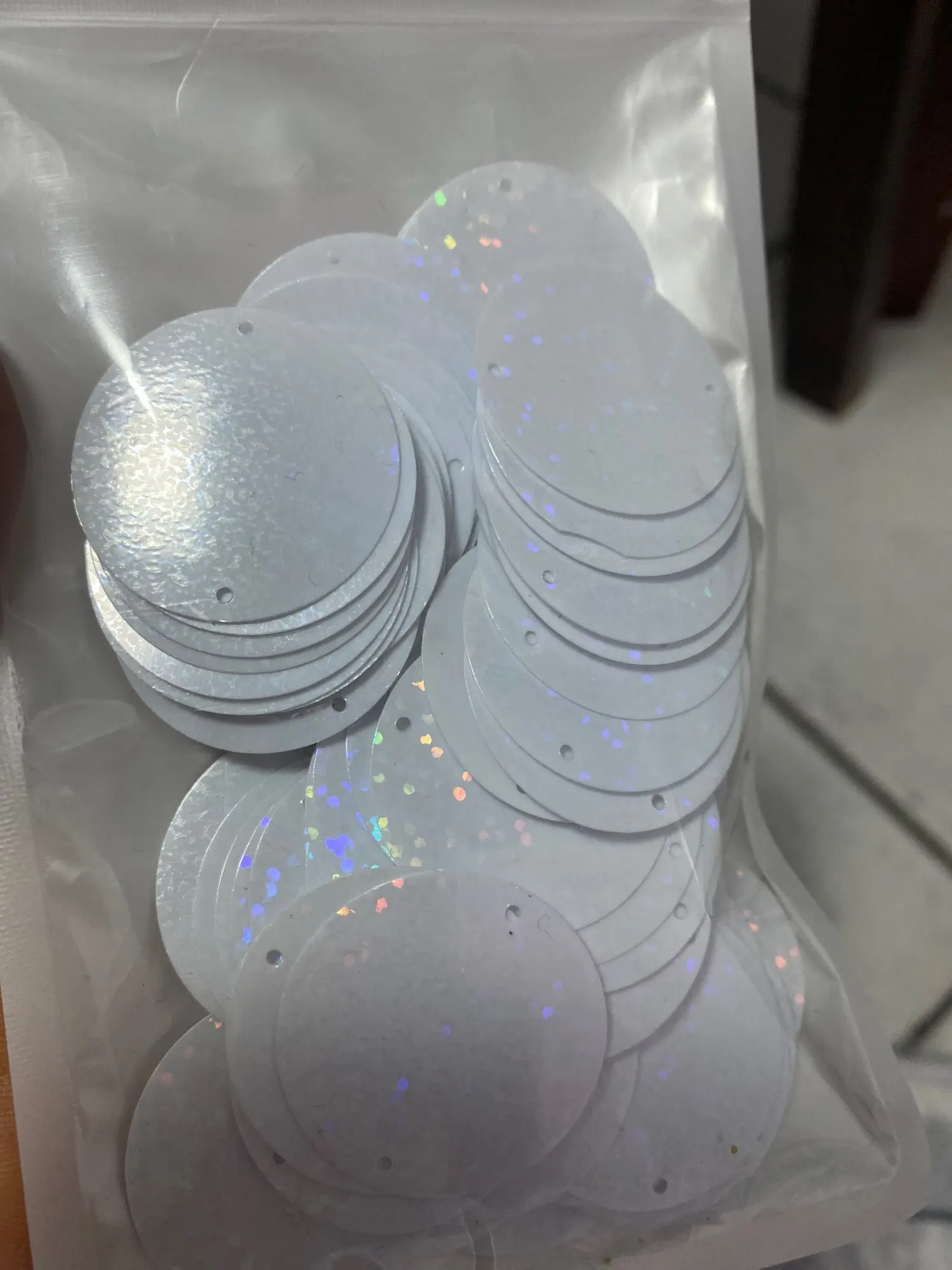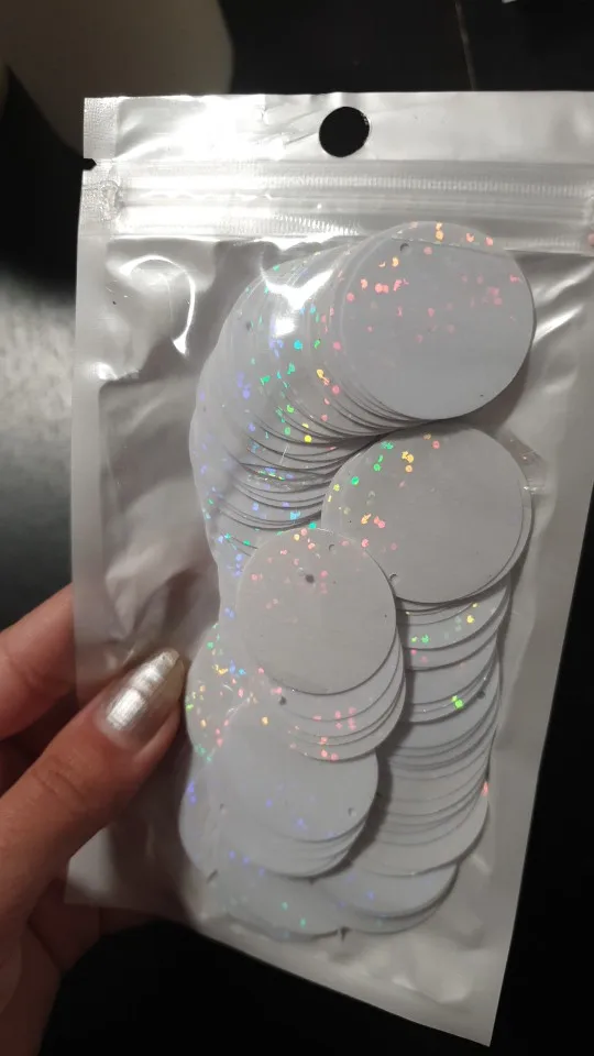 Anillo redondo de PVC de lentejuelas grandes, color blanco láser, 3-5cm, costura de lentejuelas sueltas, material de paño artesanal, 100 Uds.
