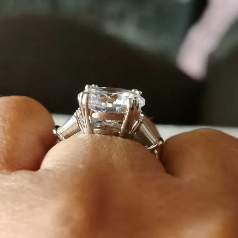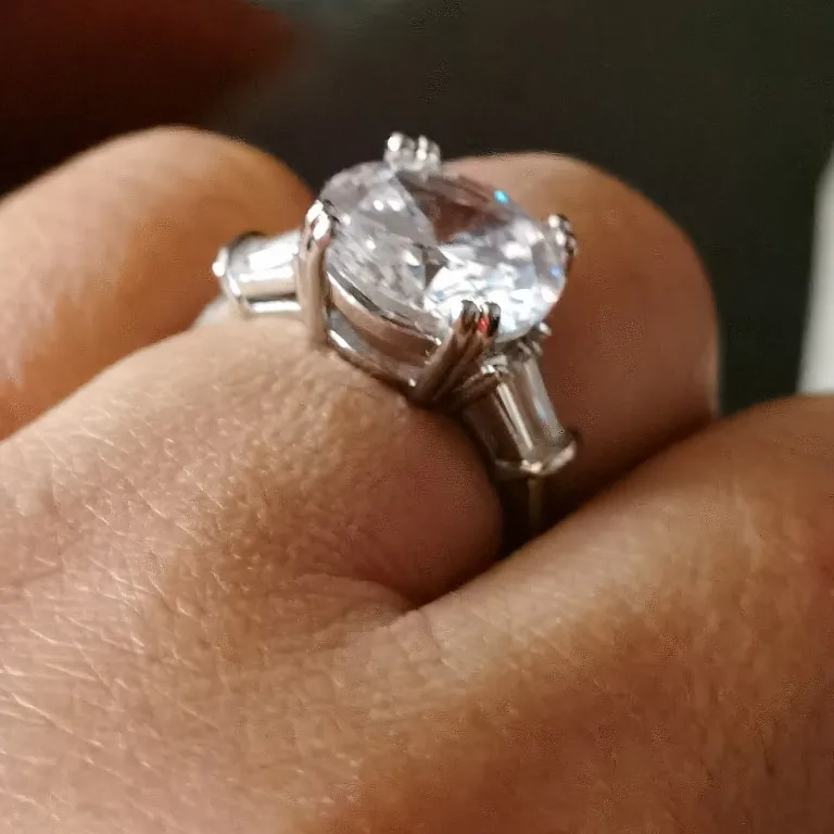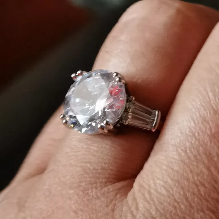 Anillo solitario de corte redondo de Sona cz de 6 quilates, anillo de compromiso de Plata de Ley 925, anillos de banda de boda para mujer, joyería nupcial lujosa para fiesta