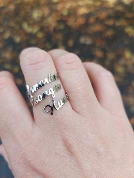 anillos Anillo familiar de acero inoxidable para hombre y mujer, anillo de nombre doble personalizado, joyería personalizada, ajustable, regalo para madre y bebé