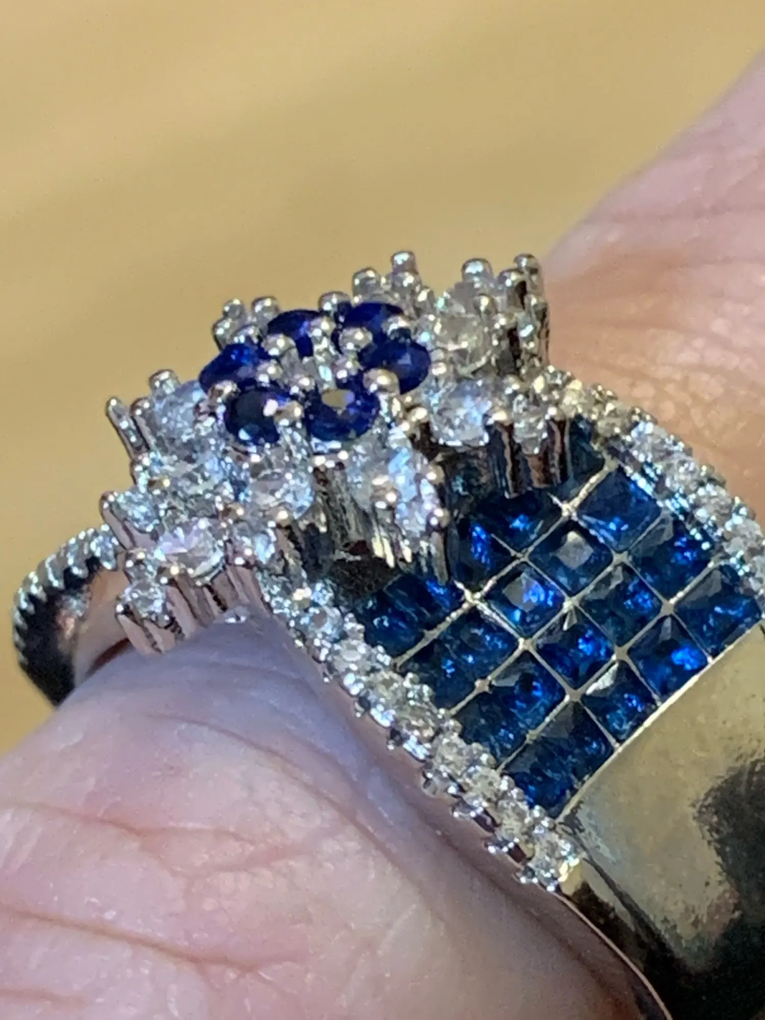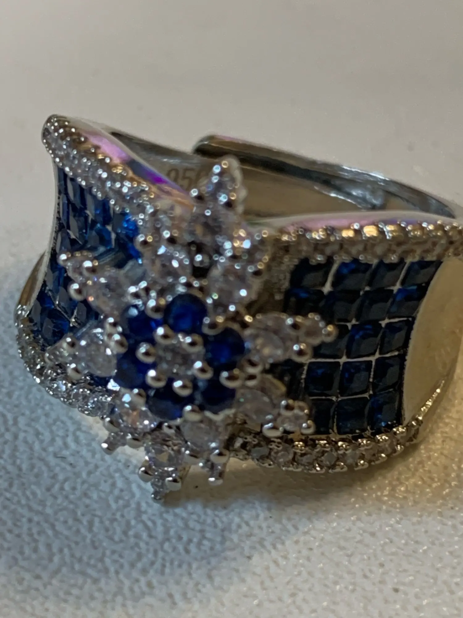 Anillos de flores de moda geométrica para mujer, joyería fina con incrustaciones de circonia cúbica azul y blanca, abalorio de boda, accesorios de compromiso
