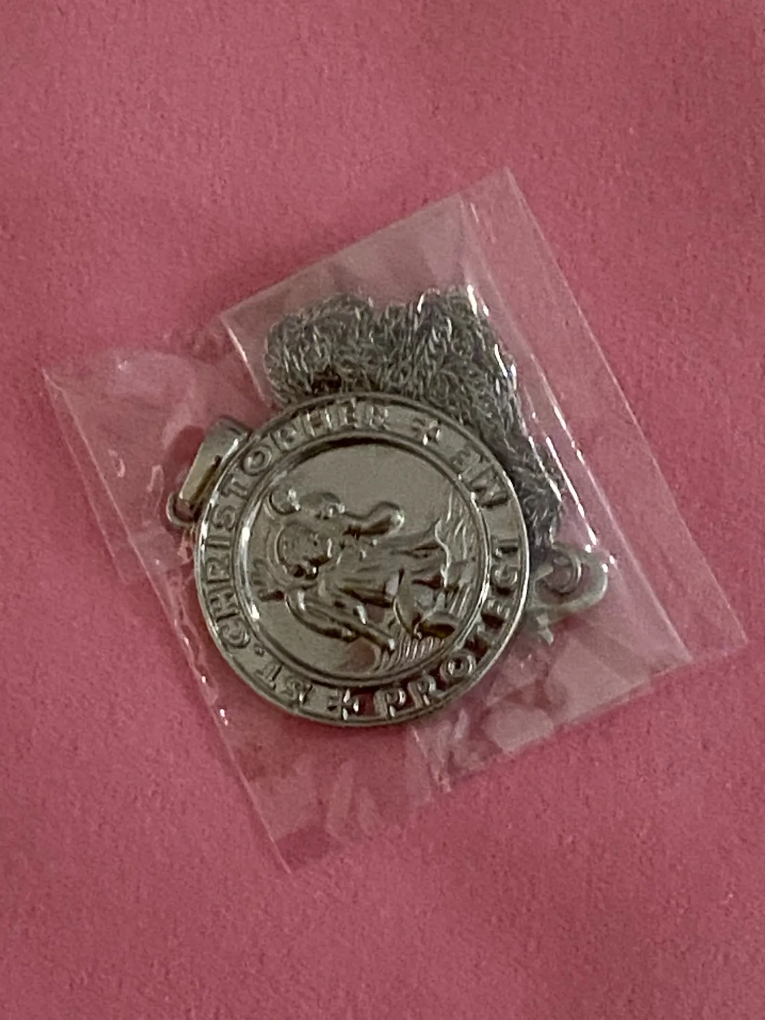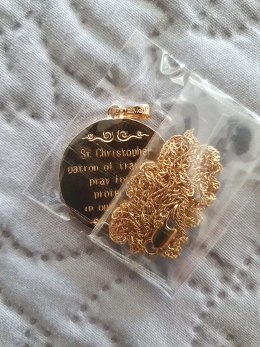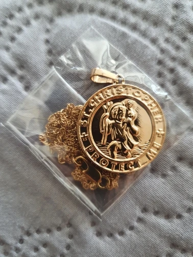 Anniyo San Cristóbal protégeme collares para mujer, Color dorado claro/plateado colgante de San Cristóbal joyería religiosa #040904